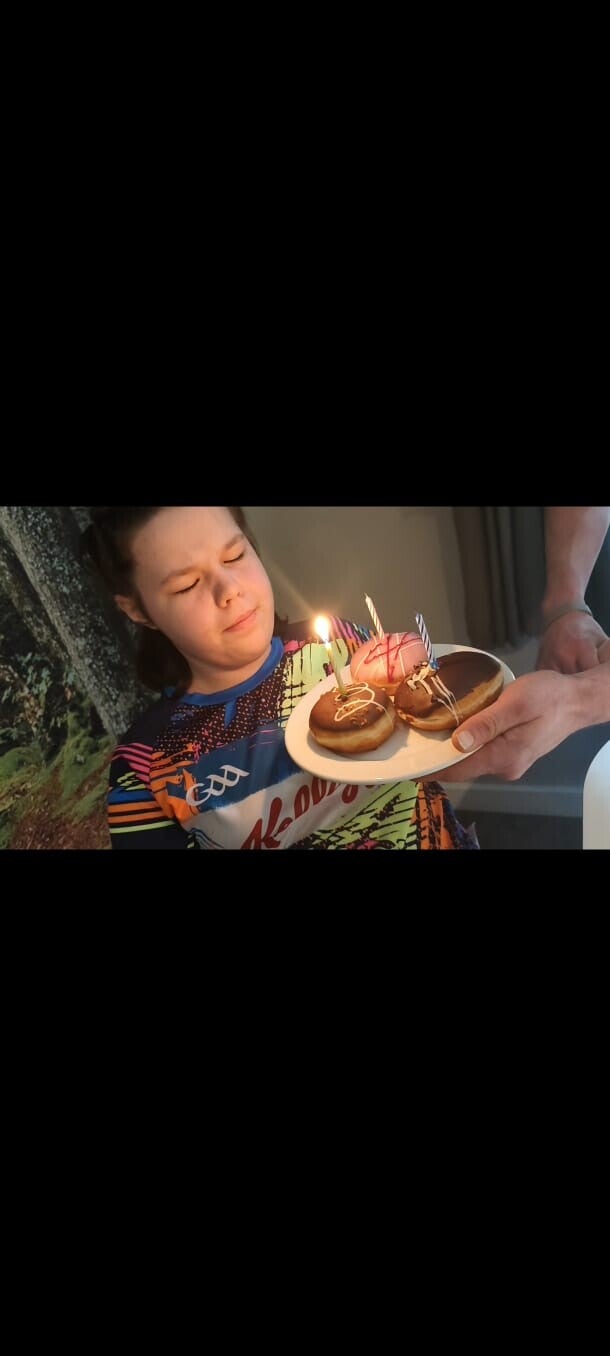We had planned to get a birthday cake from the shop, but when we went on Wednesday there were no cakes left. Instead, there were donuts and candles, so that became her birthday “cake” — and honestly, she loved it just as much 🍩🎂